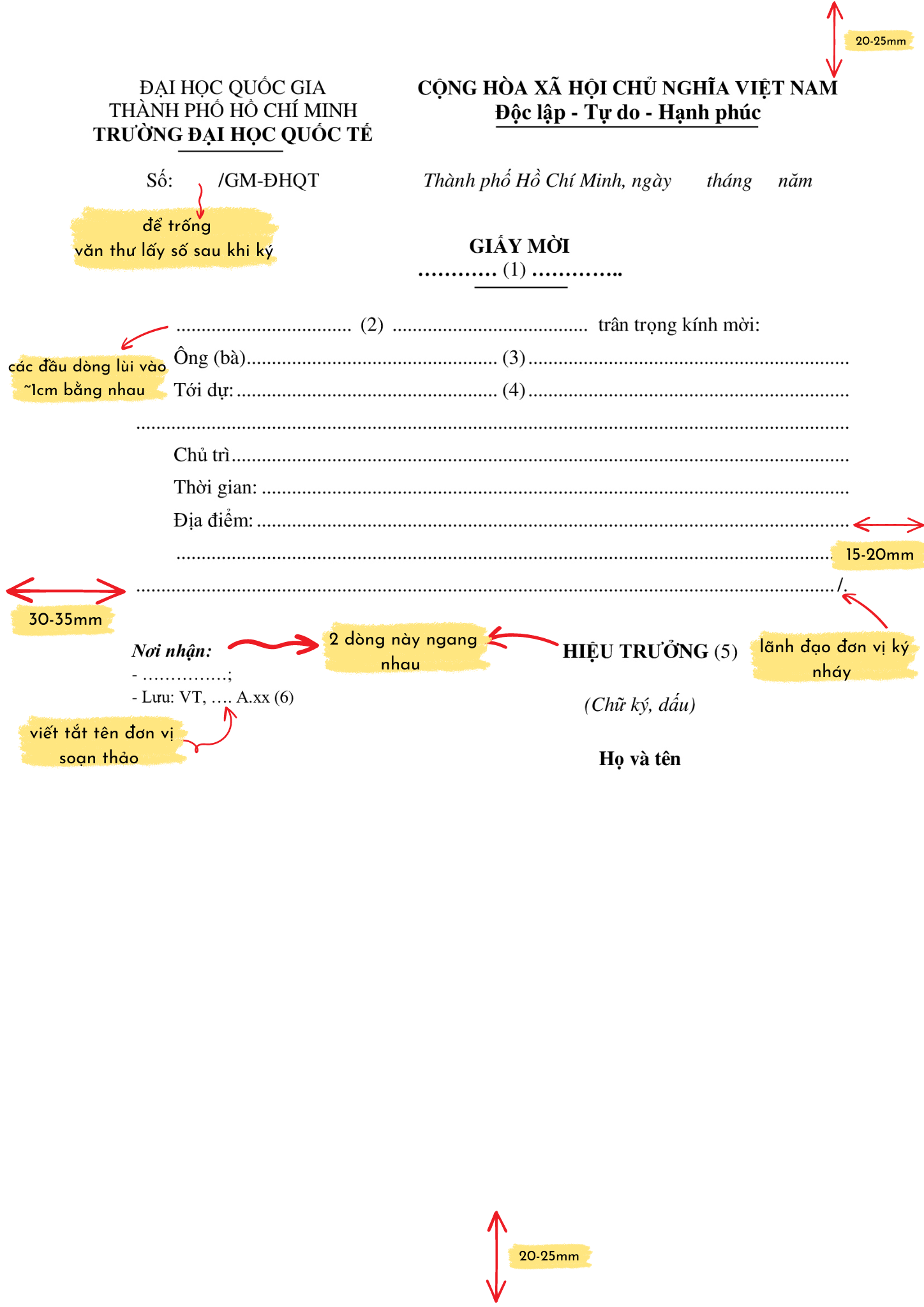 Trường Đại học Quốc tế ban hành Biểu mẫu Giấy mời bản word của nhà trường theo link.