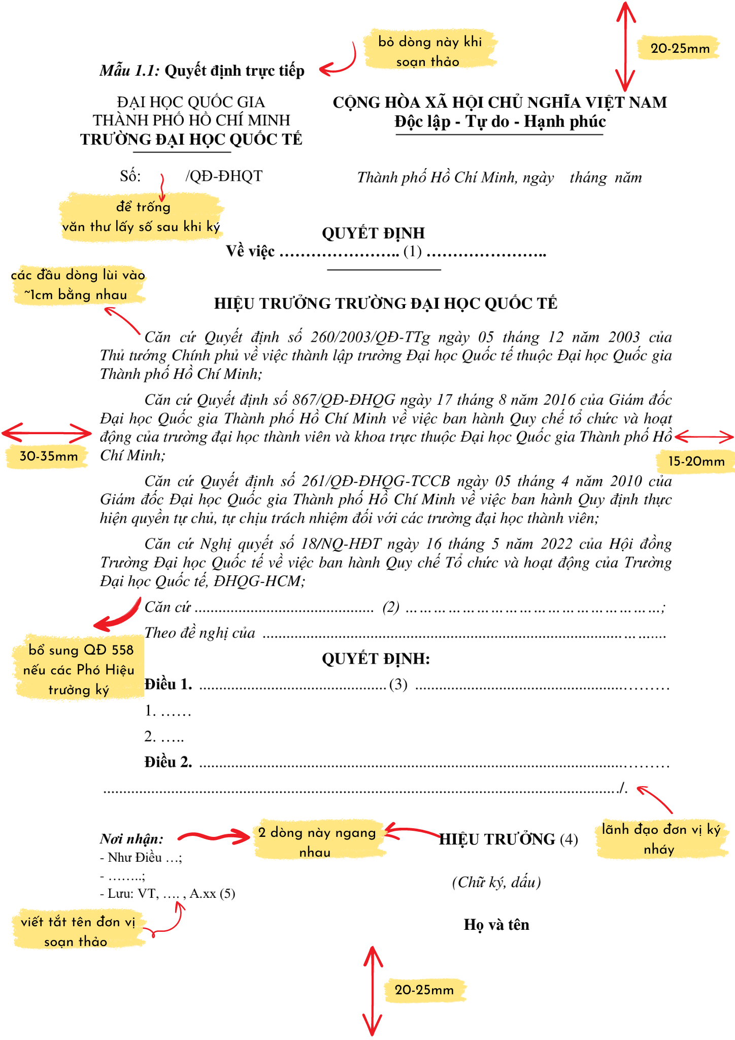 Một số lưu ý về cách thức soạn thảo Quyết định trực tiếp như sau: